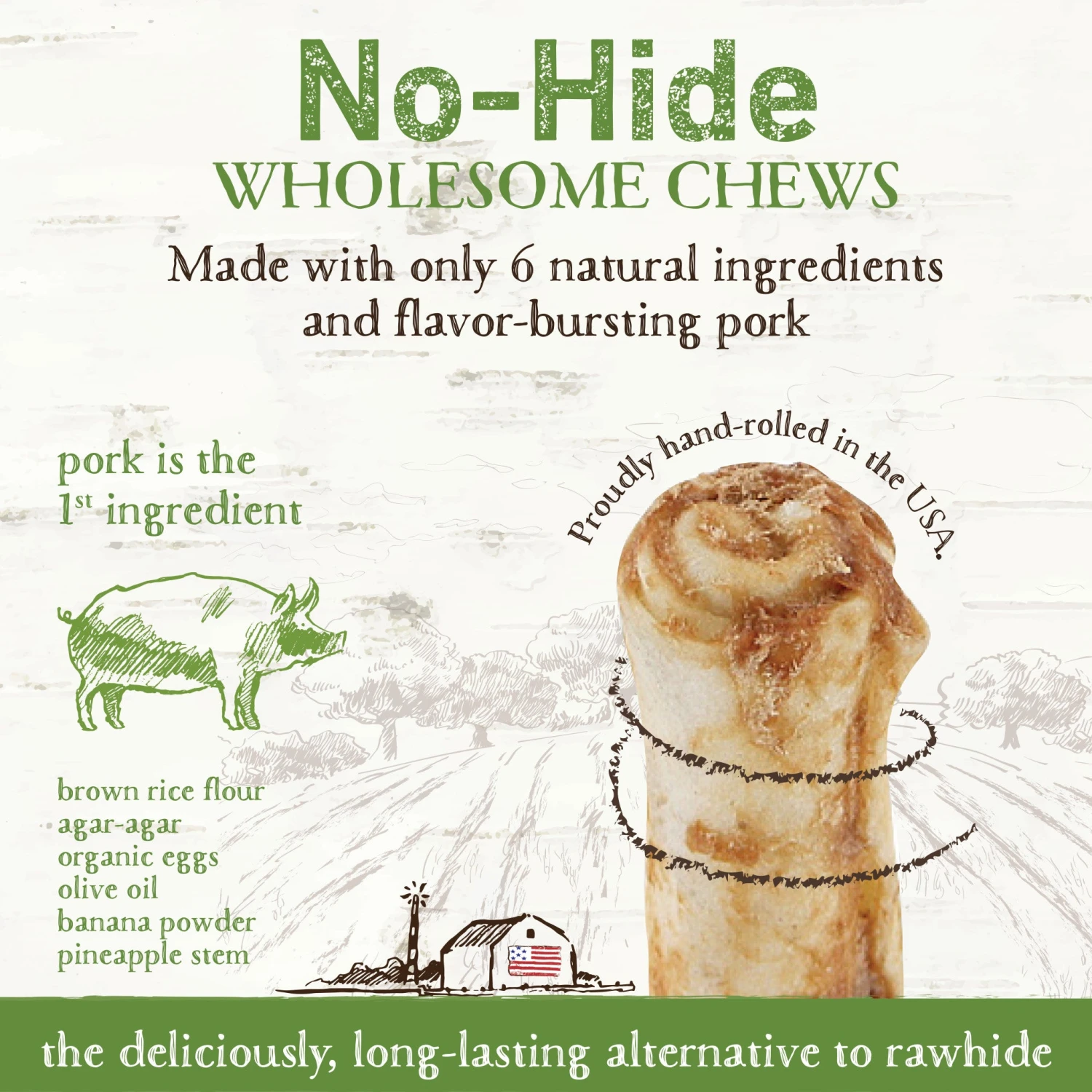 No-Hides are 100% free of rawhide, chemicals, additives, bleaches, and formaldehydes. No-Hide Wholesome Chews are proudly made in the USA. They are carefully blended with 7 pure & simple ingredients, hand-rolled, baked, coated, air-dried & packed with love in Lancaster County, PA.