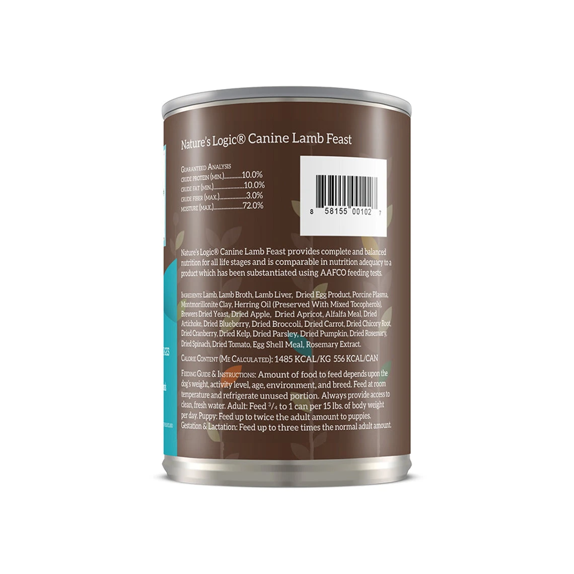 Nature’s Logic Canine Lamb Feast is a highly palatable and nutrient dense muscle meat and organ meat based canned food that uses whole ingredients and never includes synthetic ingredients.Â
