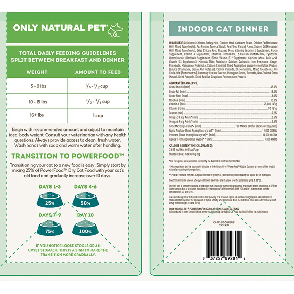 Discover the health and nutrition benefits of Only Natural Pet PowerFood Indoor Cat Dinner today.