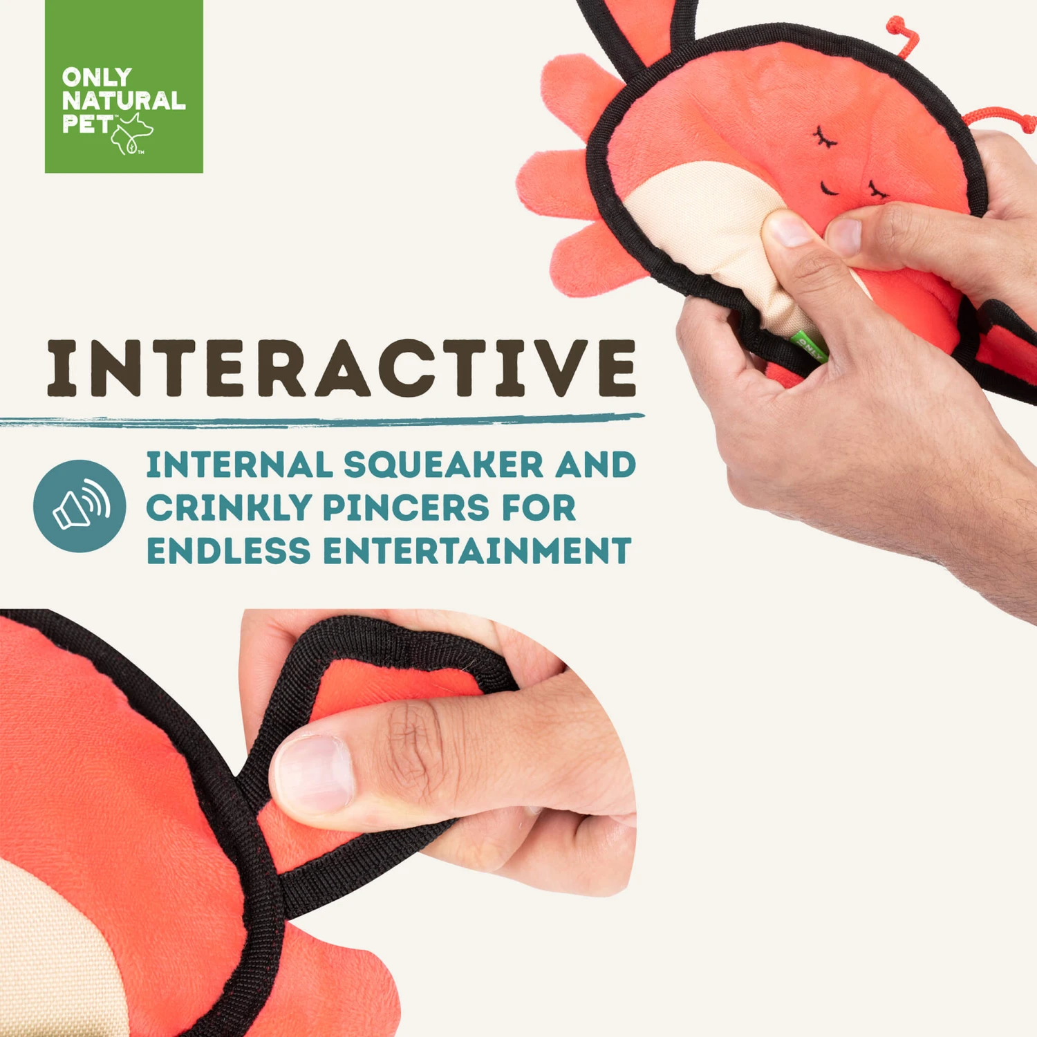 Only Natural Pet Sea Creatures Recycled Plush Dog Toys are charming plush toys that are tough enough to stand up to all of life’s adventures. From the deepest depths of the ocean, these ultra-durable dog toys have surfaced for a boatload of fun. Each Sea Creature has its own unique personality and multiple play features, like rope pulls, crinkle, and squeakers, to keep tails wagging and good times rolling.