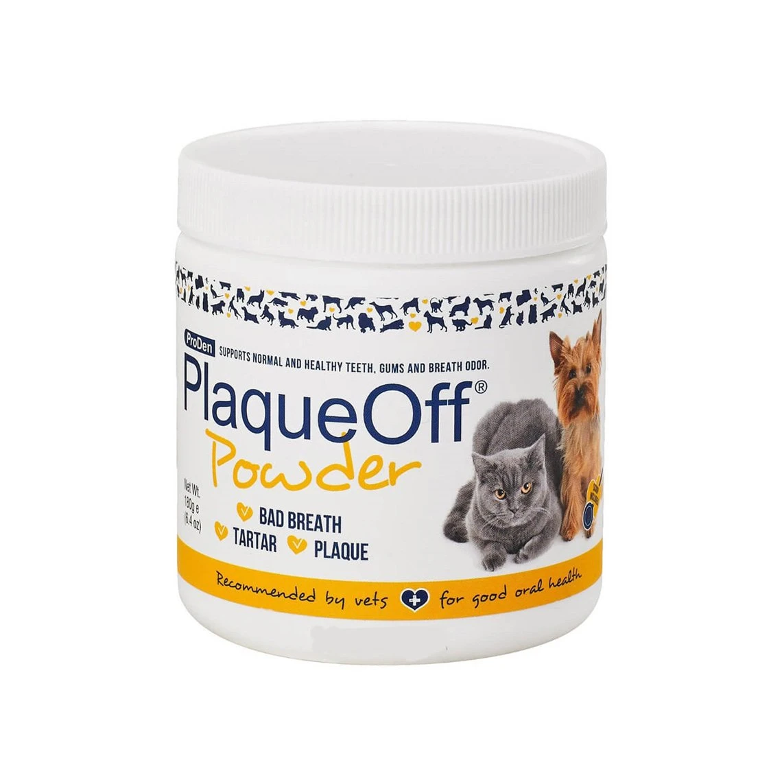 ProDen PlaqueOff Dental Powder is an easy way for those dog and cat owners to care for their pet’s teeth who don’t have the patience or inclination to brush their dog or cat’s teeth regularly. ProDen PlaqueOff Powder is simply added on a daily basis to dry or wet food. Dogs and cats like the taste of the small amount that is added.