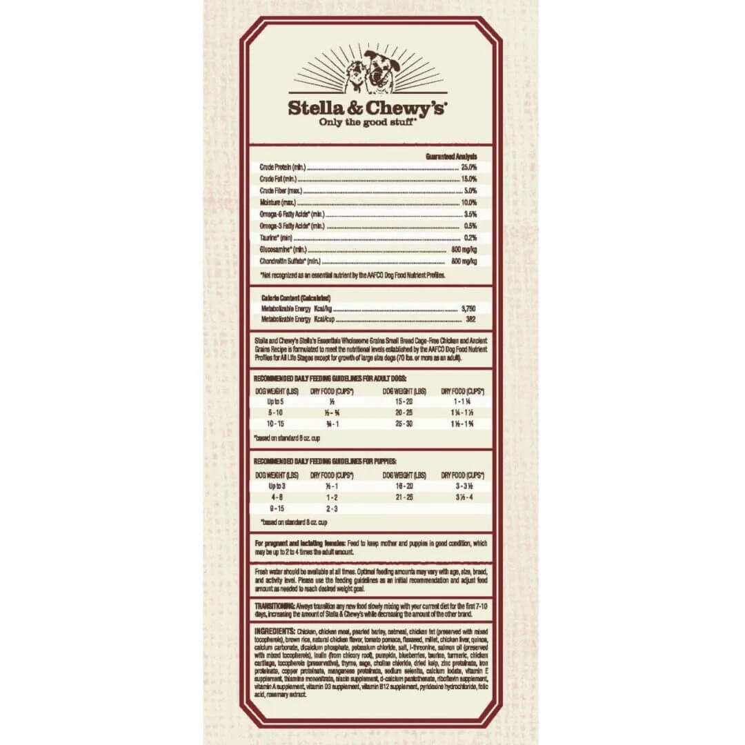 Made in the USA, Stella and Chewy’s Essentials Chicken and Ancient Grain Small Breed Dog Food is a great choice for your small breed dog!